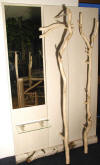 Z.B. Birke, Ahorn und Weide eignen sich für diese Art der Verarbeitung. Die frisch gefällten Bäume werden sofort von uns begutachtet und in verschiedene Kategorien eingeteilt. Als nächstes werden die Stämme und Äste, je nach Bedarf in die entsprechenden Längen geschnitten und für die weitere Verarbeitung vorbereitet. Einige Teile werden nun gewässert und geschält. Die so vorbereiteten Hölzer kommen in die Montage. Dort werden sie noch mal sortiert und für einzelne Möbelstücke oder Dekoartikel zugeschnitten. Die Verbindungen der Wildholzteile untereinander erfolgt ausschließlich durch Zapfen die an die einzelnen Äste angearbeitet werden.